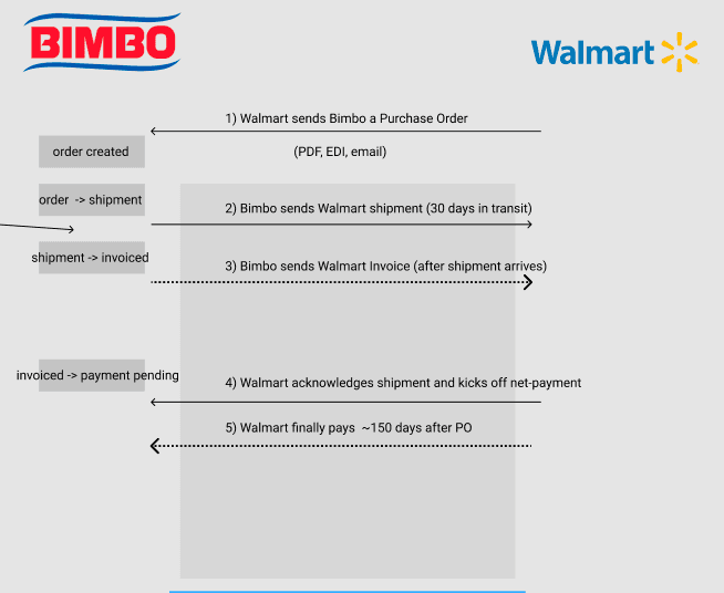 Lockstep will lend the user (Bimbo $) at any point here, an interesting variable on the sustainability of shipment, duration of financing, and where along the financing chain (post-PO vs post-Invoice).