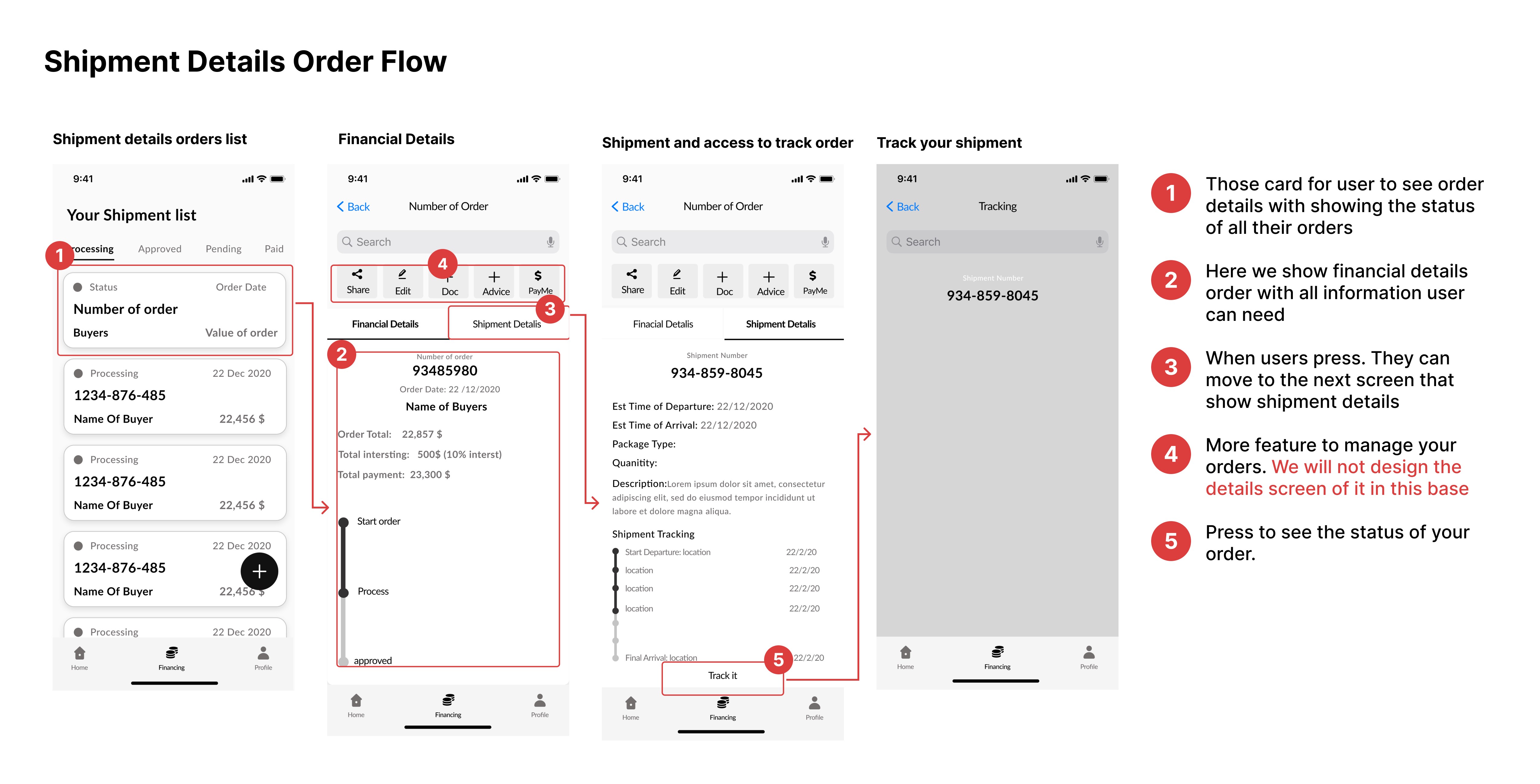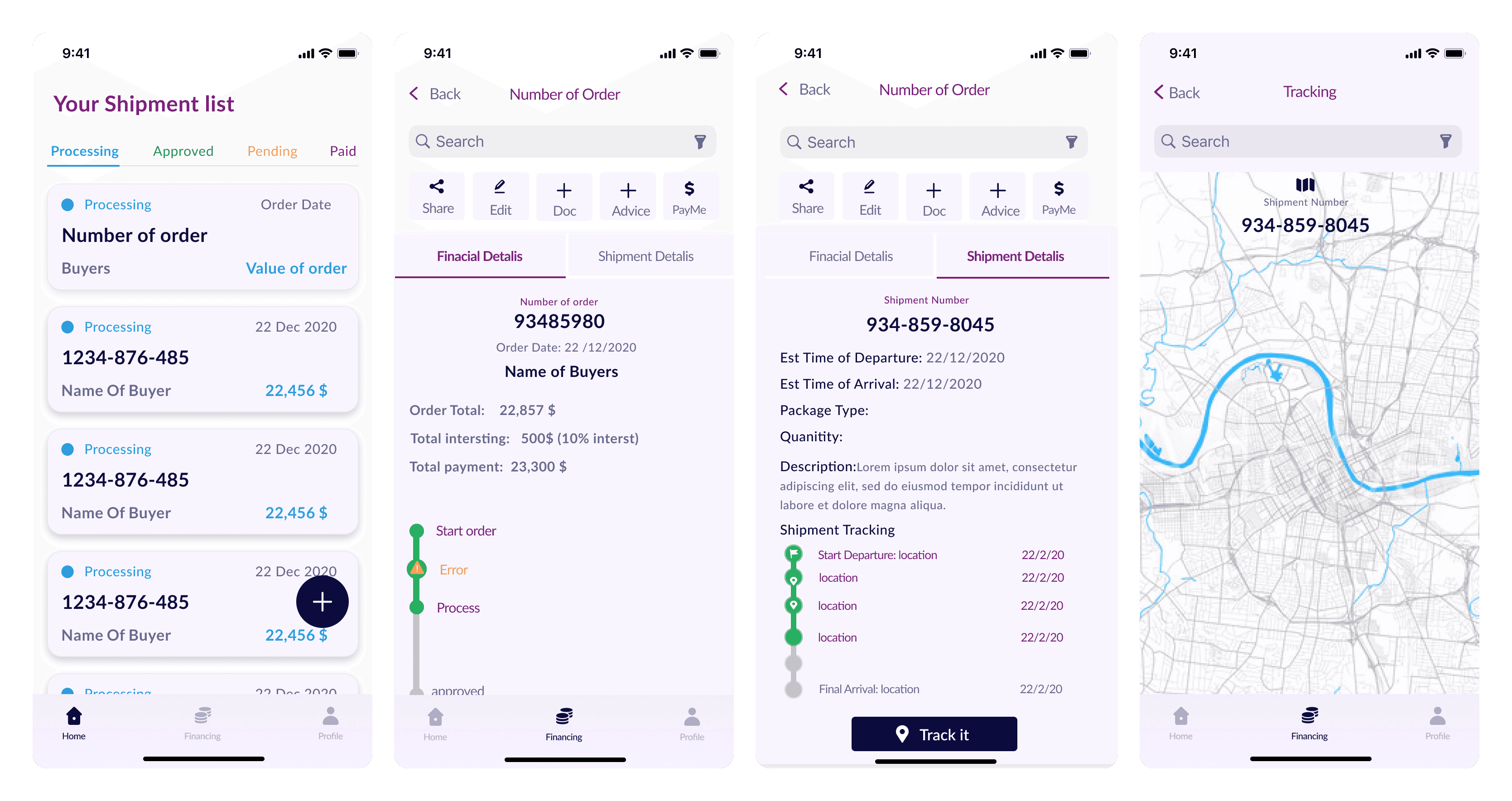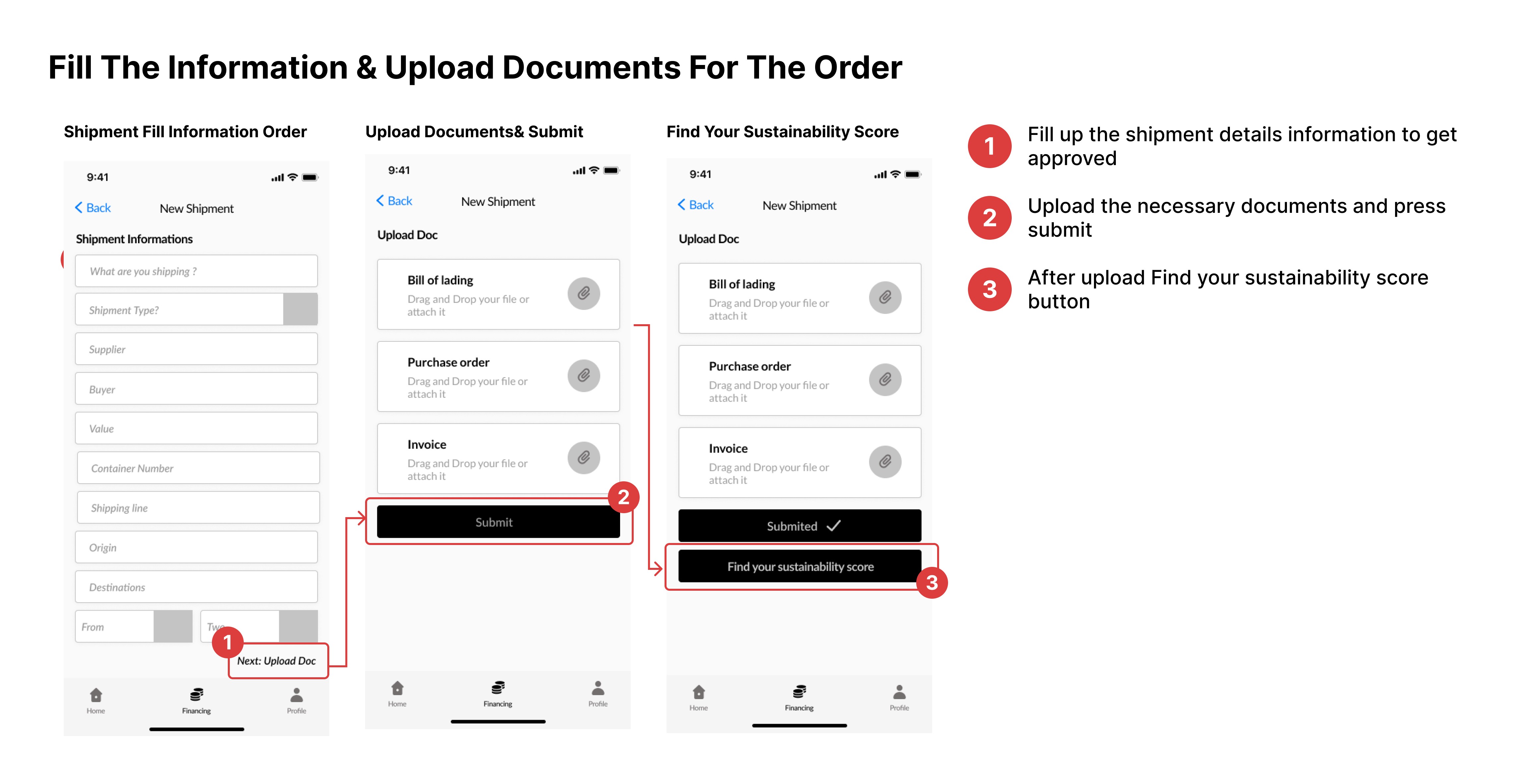 Design an MVP of a mobile app to help merchants with financing during the shipping process